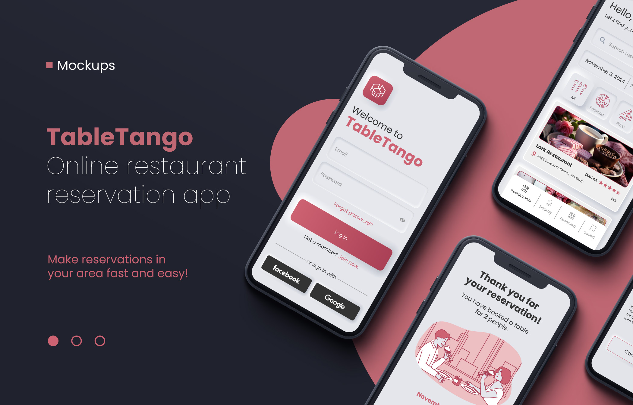 I designed the visual identity and user interface for TableTango, a mobile restaurant reservation app commissioned by a friend. Although the project was ultimately cancelled, it was a rewarding opportunity to merge my passion for food and dining culture with digital design. My work included wireframes, high-fidelity mockups, custom iconography, and UI/UX flows that made the reservation process simple, intuitive, and engaging. The project allowed me to explore branding, usability, and visual storytelling while creating a polished concept that showcased how people could easily discover and book restaurants in their area.